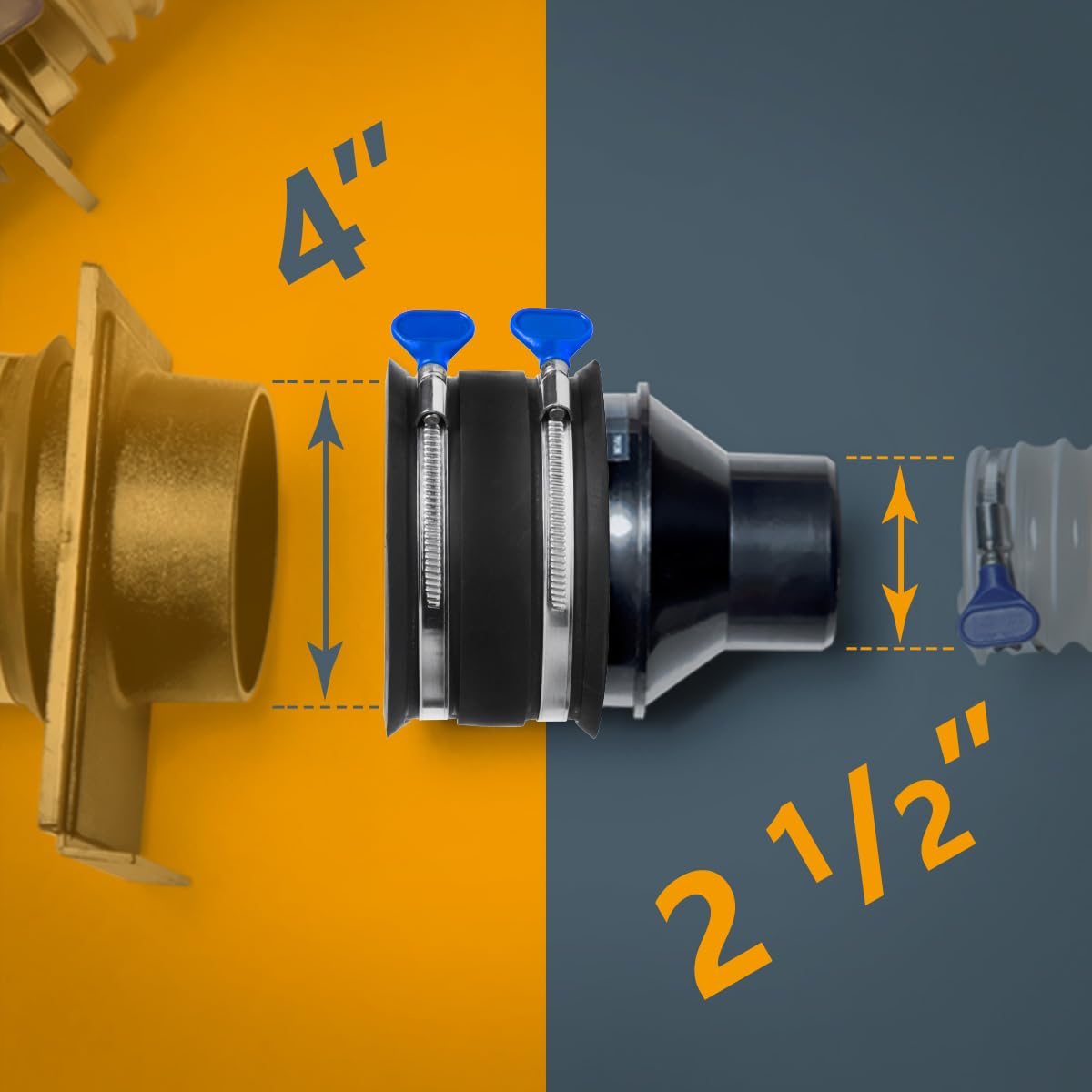 POWERTEC 4 Inch to 2-1/2 Inch Reducer and Flex Cuff with Stainless Steel Key Hose Clamps, Dust Collection Fitting for Woodworking Dust Collection Hose and Ports—