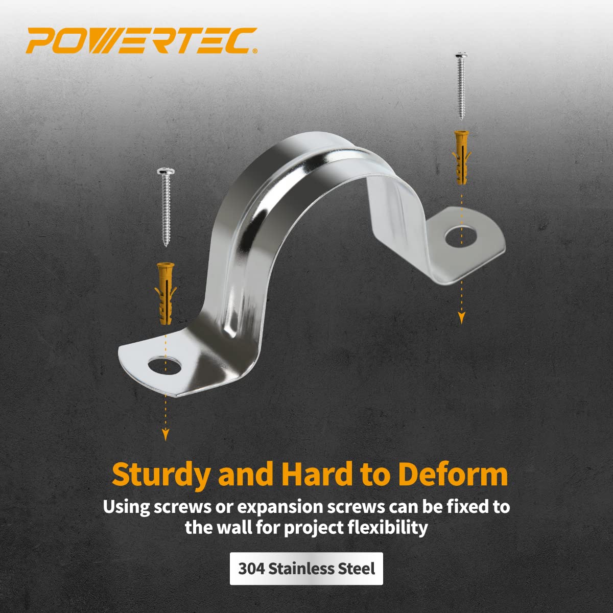 POWERTEC 71663 1-1/4” Pipe Strap Clamp Hanger Set for 32mm OD Pipes, 2 Hole Mount U Bracket Rigid, Stainless Steel 304-20 PCS
