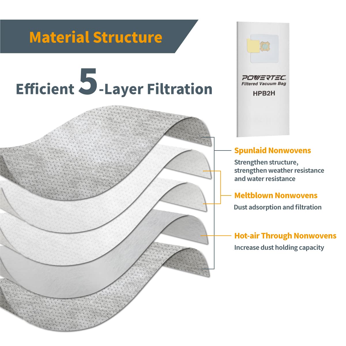 POWERTEC HPB2H, HPB2HPK Vacuum Bags for AstroVac 3PK, for Central Vacuum Systems & Vacumaid, Replacement Dust Bags, Filter Bags, Shop Vacuum Bags (75046)