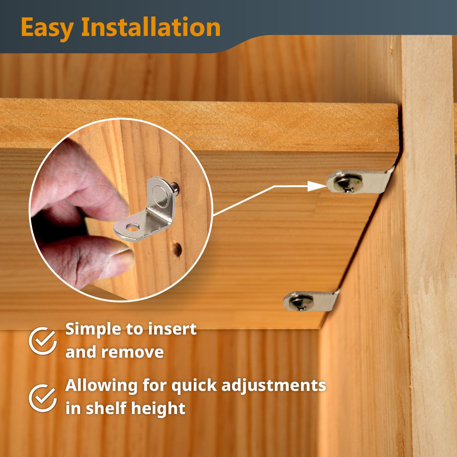 - EASY INSTALLATION: These shelf support pins can be installed by hand and fit perfectly into 5mm pre-drilled holes (Please note: your hole should be equal to or slightly smaller than the diameter listed for a tight fit)