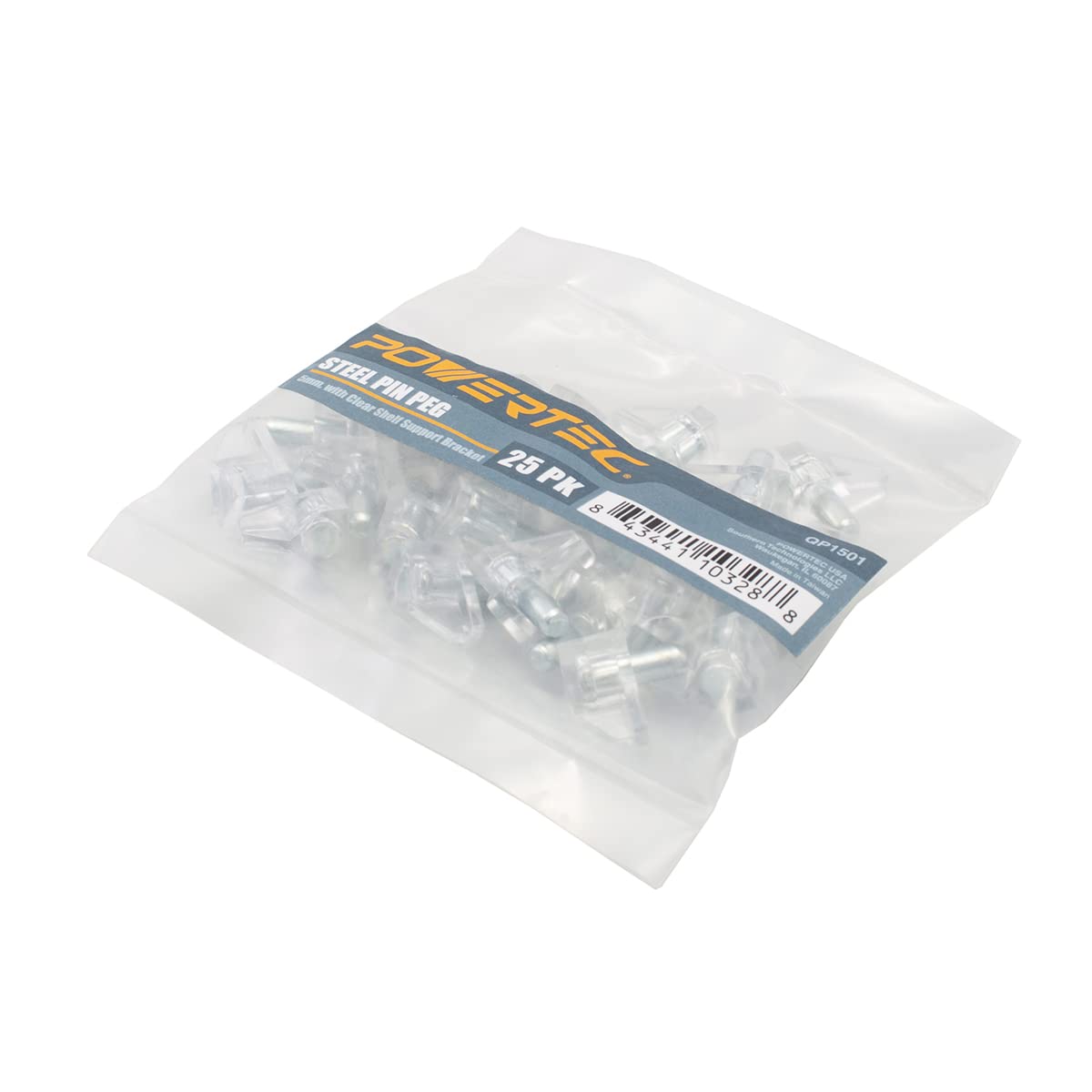 POWERTEC QP1501V 5mm Clear Shelf Pegs 25 pcs, Shelf Pins Support Pegs for Shelves, Kitchen Cabinet Shelf, Bookshelf, Closet and Furniture, Nickel Plated Shelf Holders Metal Pin Pegs